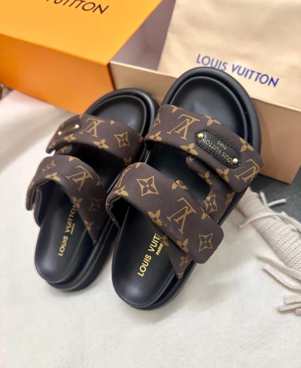 Brown Monogram Leather Double Strap Luxury Slides β Louis Vuitton