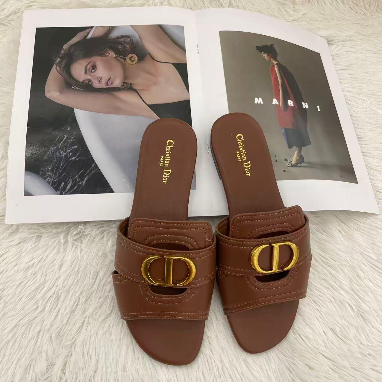 Christian Dior Slide Sandals Brown with Gold CD Buckle – Dior
