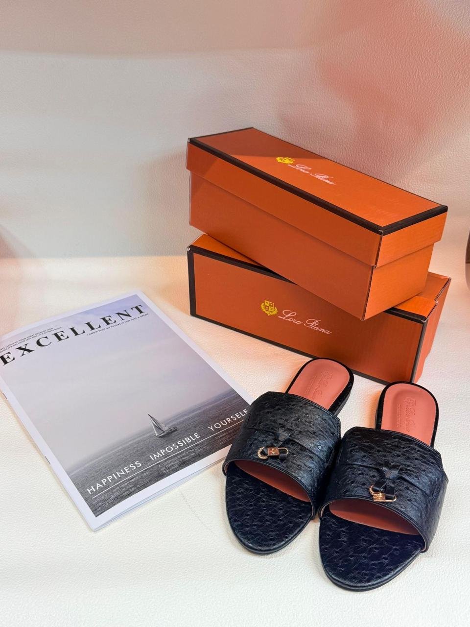 Loro Piana Slide Sandals Deep Blue with Gold Accent Buckle – Loro Piana