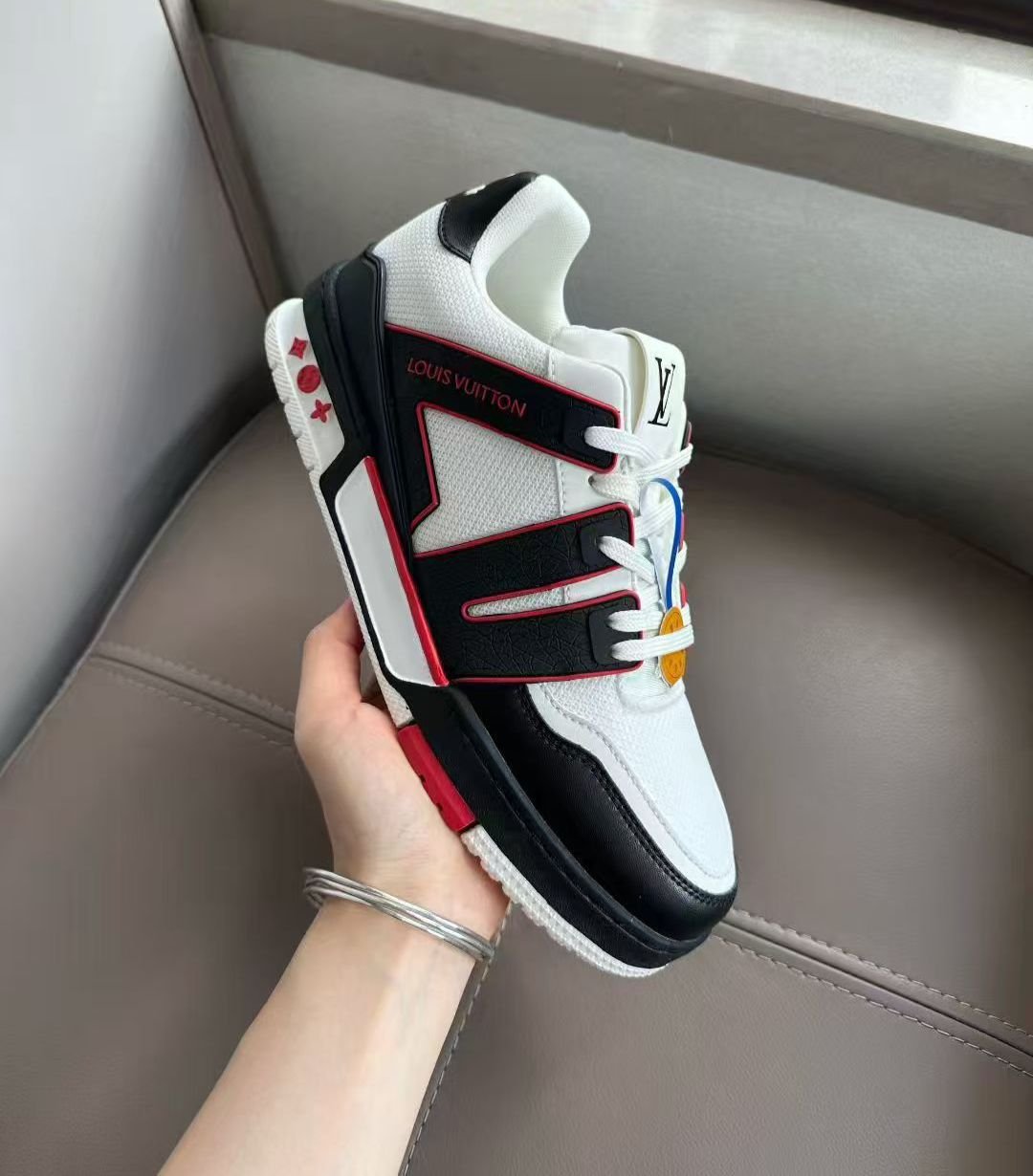Louis Vuitton Trainer Sneaker White with Red & Black Trim
