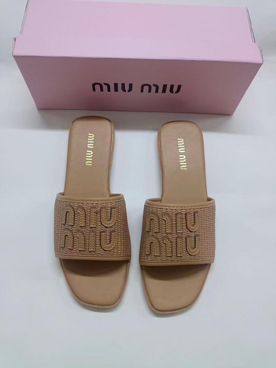 Miu Miu Slide Sandals Tan Brown with Embossed Logo Design β Miu Miu