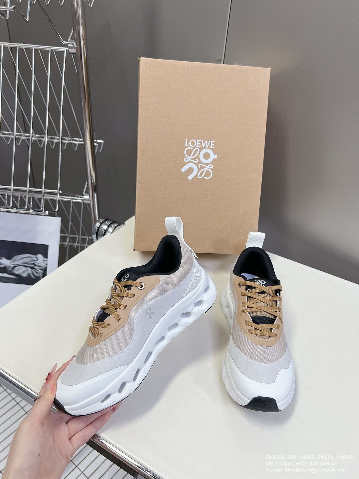On Cloud X Loewe White Beige Gold Sneakers