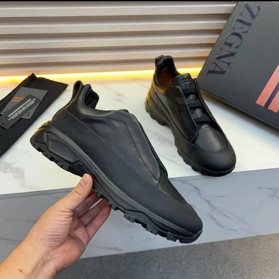ZEGNA Menβs Black Leather Low-Top Sneakers β Luxury Designer Casual Shoes