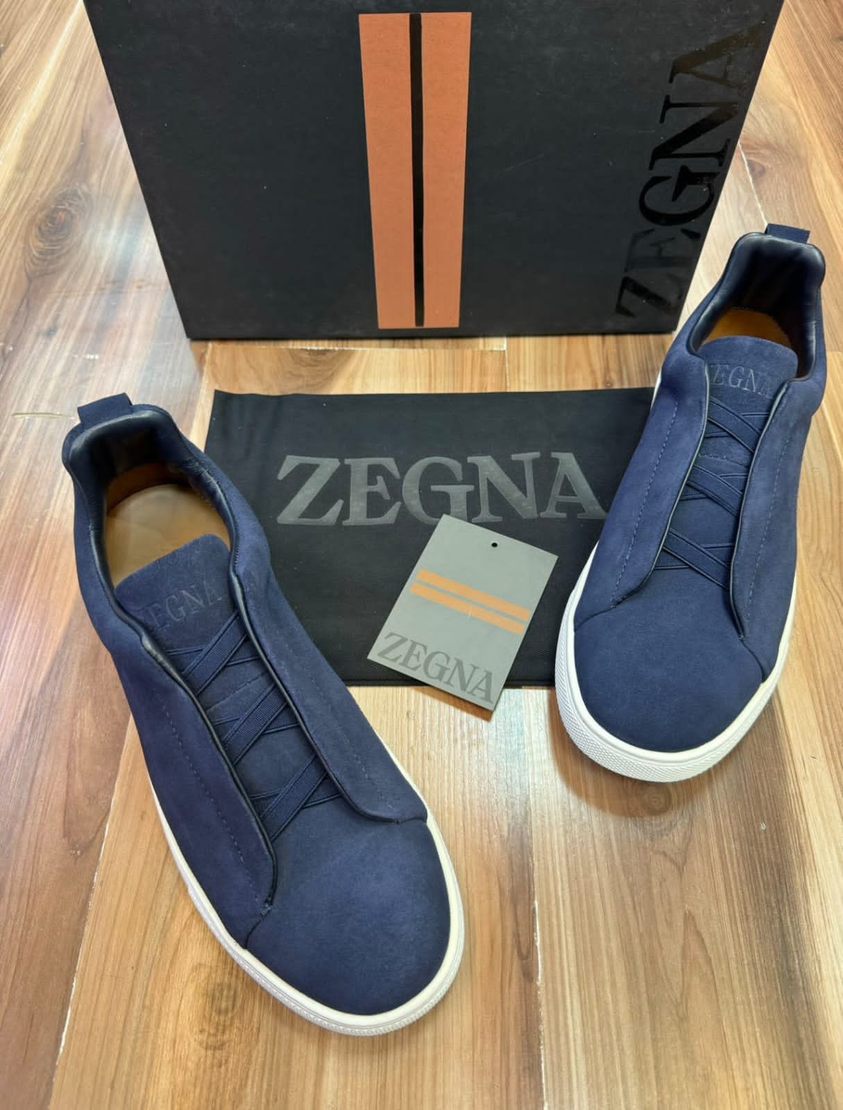 ZEGNA Menβs Navy Blue Suede Slip-On Sneakers β Premium Designer Casual Footwear